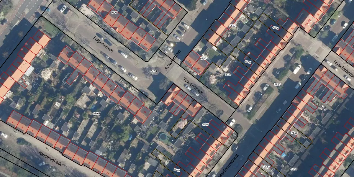 Tulpenstraat 21 is gelegen op kadastraal perceel LDN01M9546. Deze kadastrale aanduiding is uniek en wordt gebruikt door het Kadaster om eigendomsrechten en andere zakelijke rechten vast te leggen. Het perceel maakt onderdeel uit van de kadastrale gemeente Leiden.