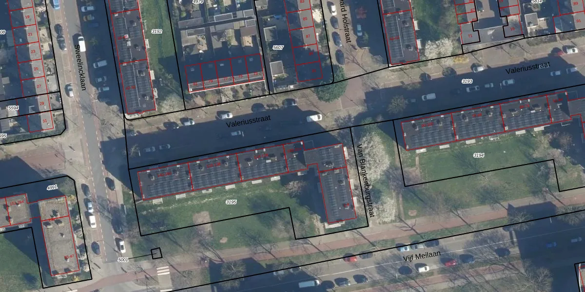 Valeriusstraat 110 is gelegen op kadastraal perceel LDN01O3195. Deze kadastrale aanduiding is uniek en wordt gebruikt door het Kadaster om eigendomsrechten en andere zakelijke rechten vast te leggen. Het perceel maakt onderdeel uit van de kadastrale gemeente Leiden.