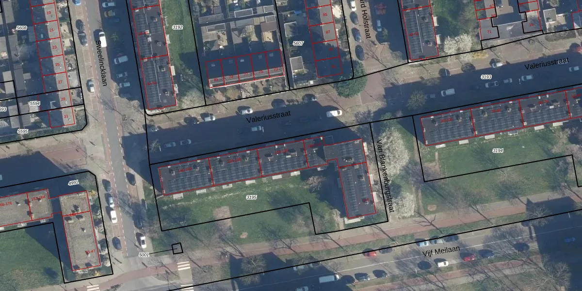 Valeriusstraat 116 is gelegen op kadastraal perceel LDN01O3195. Deze kadastrale aanduiding is uniek en wordt gebruikt door het Kadaster om eigendomsrechten en andere zakelijke rechten vast te leggen. Het perceel maakt onderdeel uit van de kadastrale gemeente Leiden.