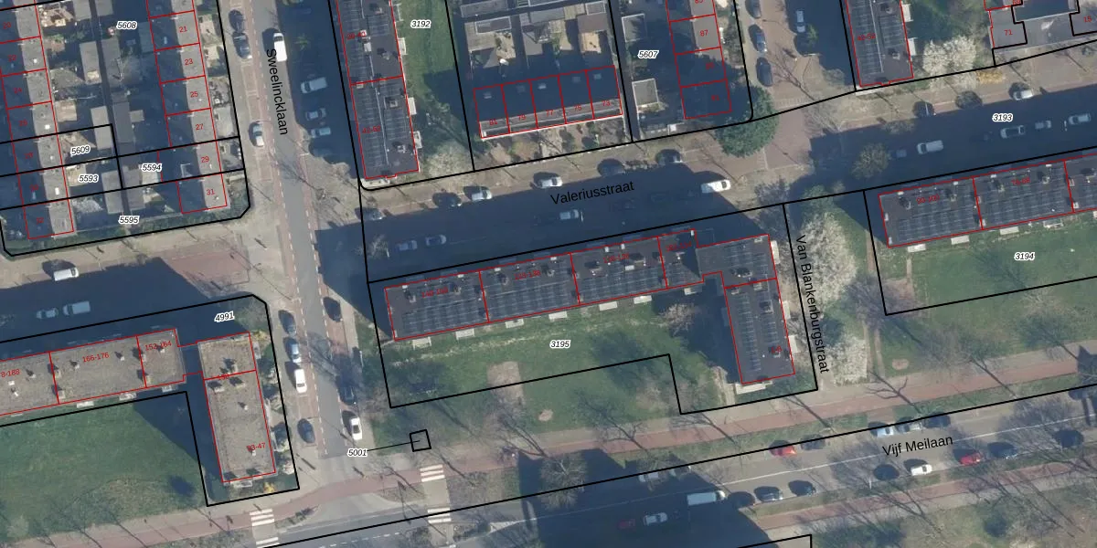 Het perceel waarop Valeriusstraat 130 staat heeft een oppervlakte van 2075 m². Dit is een zeer groot perceel. De perceeloppervlakte wordt geregistreerd door het Kadaster. Gedetailleerde informatie over de maten van dit perceel kunt u vinden in het rapport Kadastrale kaart met maatvoering van Valeriusstraat 130.