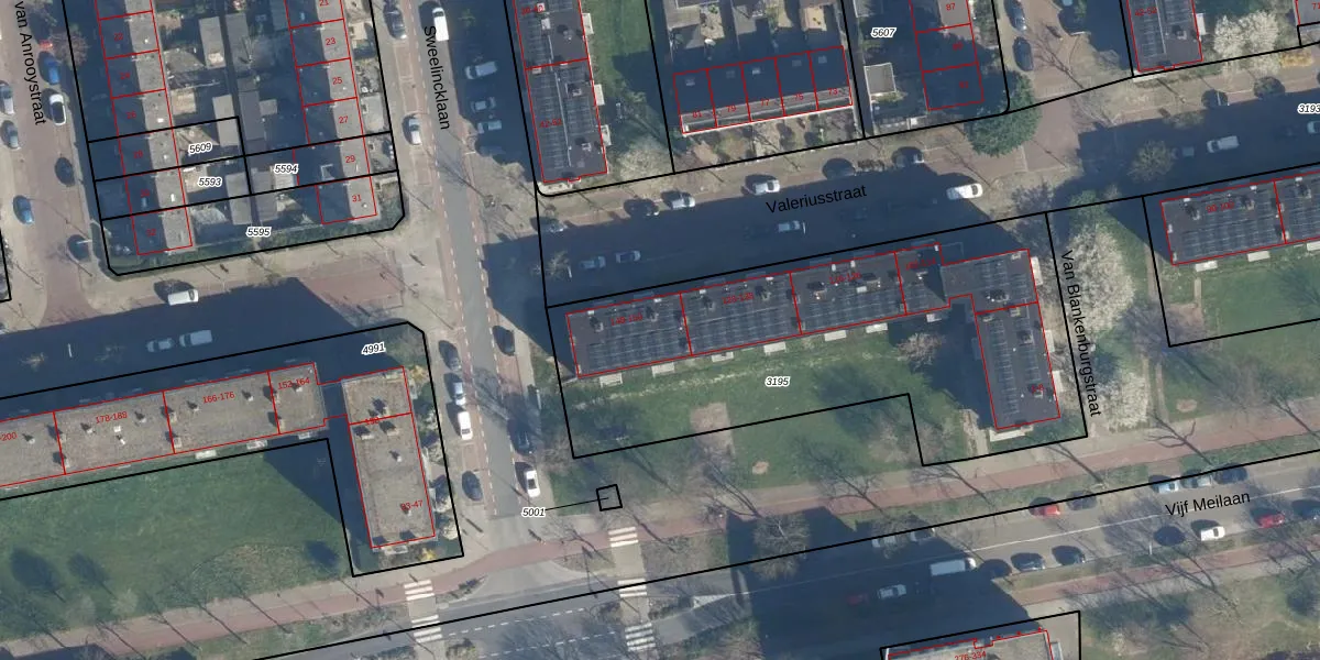 Het perceel waarop Valeriusstraat 144 staat heeft een oppervlakte van 2075 m². Dit is een zeer groot perceel. De perceeloppervlakte wordt geregistreerd door het Kadaster. Gedetailleerde informatie over de maten van dit perceel kunt u vinden in het rapport Kadastrale kaart met maatvoering van Valeriusstraat 144.