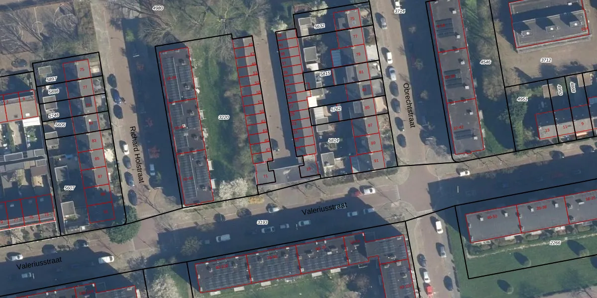 Het perceel waarop Valeriusstraat 17 staat heeft een oppervlakte van 1273 m². Dit is een zeer groot perceel. De perceeloppervlakte wordt geregistreerd door het Kadaster. Gedetailleerde informatie over de maten van dit perceel kunt u vinden in het rapport Kadastrale kaart met maatvoering van Valeriusstraat 17.