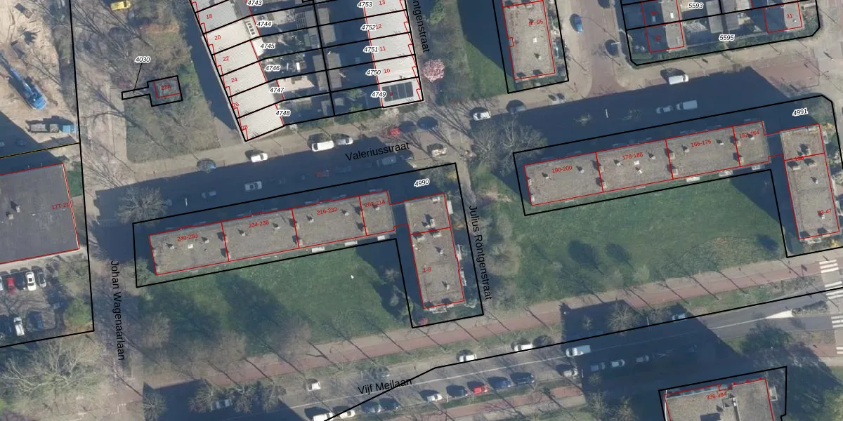 Valeriusstraat 204 is gelegen op kadastraal perceel LDN01O4990. Deze kadastrale aanduiding is uniek en wordt gebruikt door het Kadaster om eigendomsrechten en andere zakelijke rechten vast te leggen. Het perceel maakt onderdeel uit van de kadastrale gemeente Leiden.