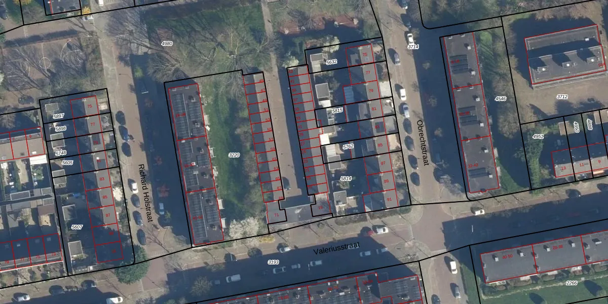 Valeriusstraat 25 is gelegen op kadastraal perceel LDN01O5814. Deze kadastrale aanduiding is uniek en wordt gebruikt door het Kadaster om eigendomsrechten en andere zakelijke rechten vast te leggen. Het perceel maakt onderdeel uit van de kadastrale gemeente Leiden.