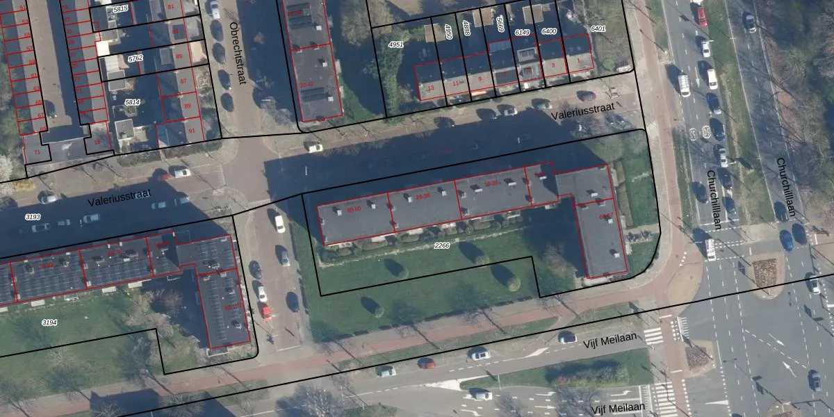 Het perceel waarop Valeriusstraat 38 staat heeft een oppervlakte van 2357 m². Dit is een zeer groot perceel. De perceeloppervlakte wordt geregistreerd door het Kadaster. Gedetailleerde informatie over de maten van dit perceel kunt u vinden in het rapport Kadastrale kaart met maatvoering van Valeriusstraat 38.