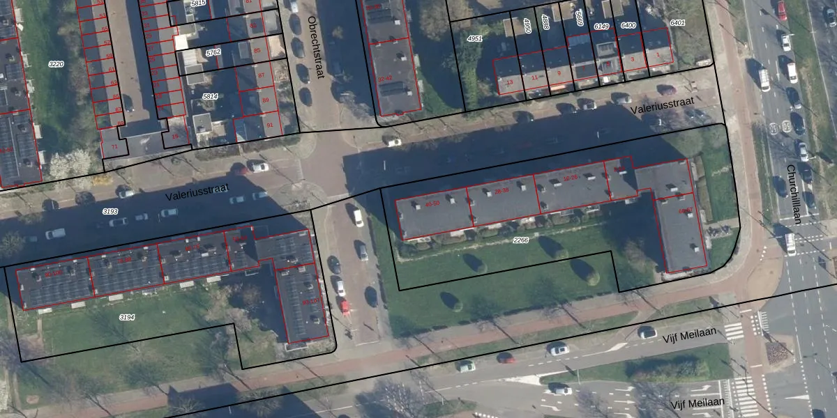 Het perceel waarop Valeriusstraat 48 staat heeft een oppervlakte van 2357 m². Dit is een zeer groot perceel. De perceeloppervlakte wordt geregistreerd door het Kadaster. Gedetailleerde informatie over de maten van dit perceel kunt u vinden in het rapport Kadastrale kaart met maatvoering van Valeriusstraat 48.