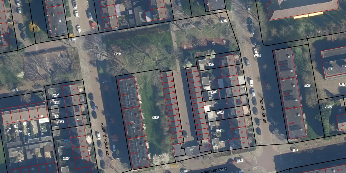 Valeriusstraat 49 is gelegen op kadastraal perceel LDN01O3220. Deze kadastrale aanduiding is uniek en wordt gebruikt door het Kadaster om eigendomsrechten en andere zakelijke rechten vast te leggen. Het perceel maakt onderdeel uit van de kadastrale gemeente Leiden.