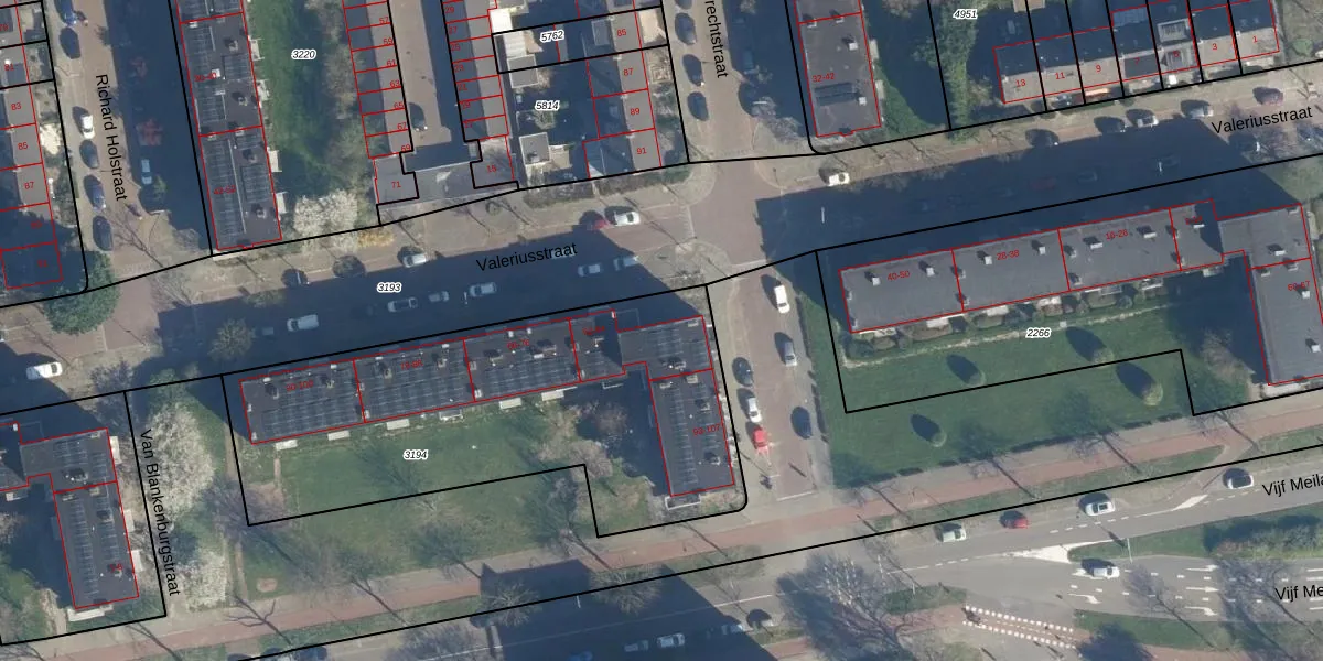 Valeriusstraat 52 is gelegen op kadastraal perceel LDN01O3194. Deze kadastrale aanduiding is uniek en wordt gebruikt door het Kadaster om eigendomsrechten en andere zakelijke rechten vast te leggen. Het perceel maakt onderdeel uit van de kadastrale gemeente Leiden.