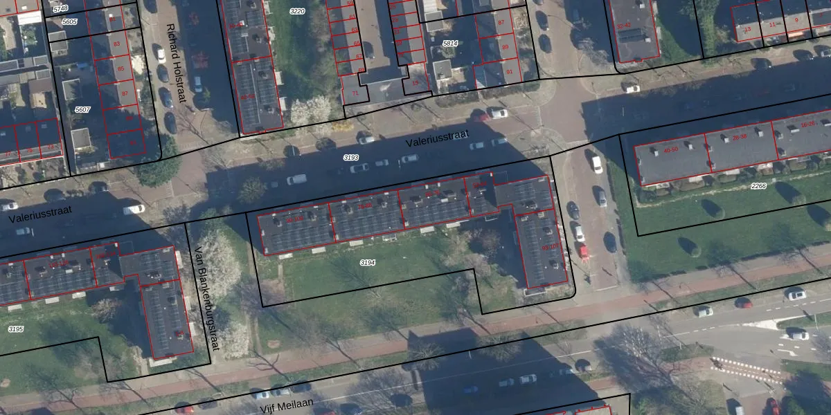 Valeriusstraat 76 is gelegen op kadastraal perceel LDN01O3194. Deze kadastrale aanduiding is uniek en wordt gebruikt door het Kadaster om eigendomsrechten en andere zakelijke rechten vast te leggen. Het perceel maakt onderdeel uit van de kadastrale gemeente Leiden.