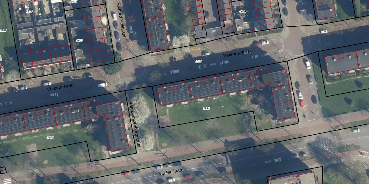 Valeriusstraat 94 is gelegen op kadastraal perceel LDN01O3194. Deze kadastrale aanduiding is uniek en wordt gebruikt door het Kadaster om eigendomsrechten en andere zakelijke rechten vast te leggen. Het perceel maakt onderdeel uit van de kadastrale gemeente Leiden.