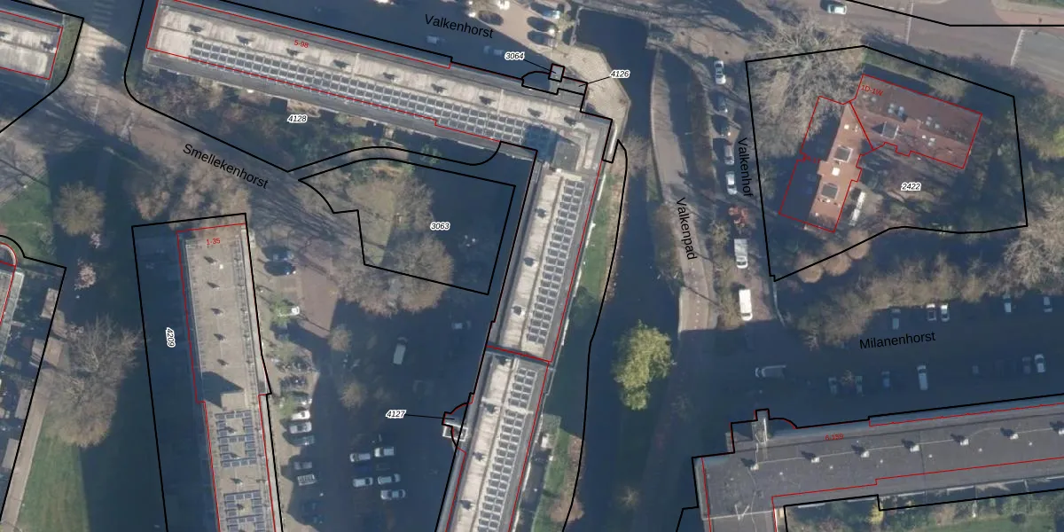 Het perceel waarop Valkenhorst 43 staat heeft een oppervlakte van 3673 m². Dit is een zeer groot perceel. De perceeloppervlakte wordt geregistreerd door het Kadaster. Gedetailleerde informatie over de maten van dit perceel kunt u vinden in het rapport Kadastrale kaart met maatvoering van Valkenhorst 43.