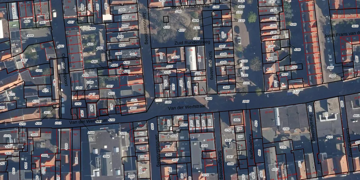 Van der Werfstraat 30 is gelegen op kadastraal perceel LDN01H2557. Deze kadastrale aanduiding is uniek en wordt gebruikt door het Kadaster om eigendomsrechten en andere zakelijke rechten vast te leggen. Het perceel maakt onderdeel uit van de kadastrale gemeente Leiden.
