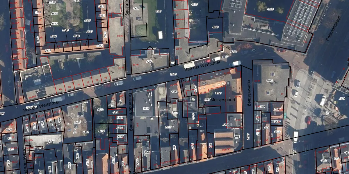 Van der Werfstraat 45 is gelegen op kadastraal perceel LDN01H2707. Deze kadastrale aanduiding is uniek en wordt gebruikt door het Kadaster om eigendomsrechten en andere zakelijke rechten vast te leggen. Het perceel maakt onderdeel uit van de kadastrale gemeente Leiden.