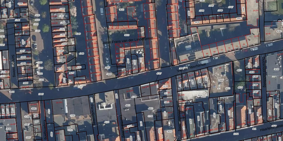 Van der Werfstraat 60 is gelegen op kadastraal perceel LDN01H2911. Deze kadastrale aanduiding is uniek en wordt gebruikt door het Kadaster om eigendomsrechten en andere zakelijke rechten vast te leggen. Het perceel maakt onderdeel uit van de kadastrale gemeente Leiden.