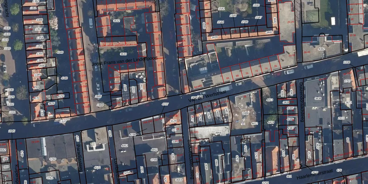 Van der Werfstraat 62 is gelegen op kadastraal perceel LDN01H3635. Deze kadastrale aanduiding is uniek en wordt gebruikt door het Kadaster om eigendomsrechten en andere zakelijke rechten vast te leggen. Het perceel maakt onderdeel uit van de kadastrale gemeente Leiden.