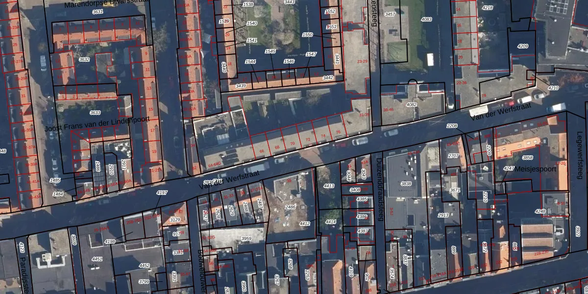 Van der Werfstraat 70 is gelegen op kadastraal perceel LDN01H4207. Deze kadastrale aanduiding is uniek en wordt gebruikt door het Kadaster om eigendomsrechten en andere zakelijke rechten vast te leggen. Het perceel maakt onderdeel uit van de kadastrale gemeente Leiden.
