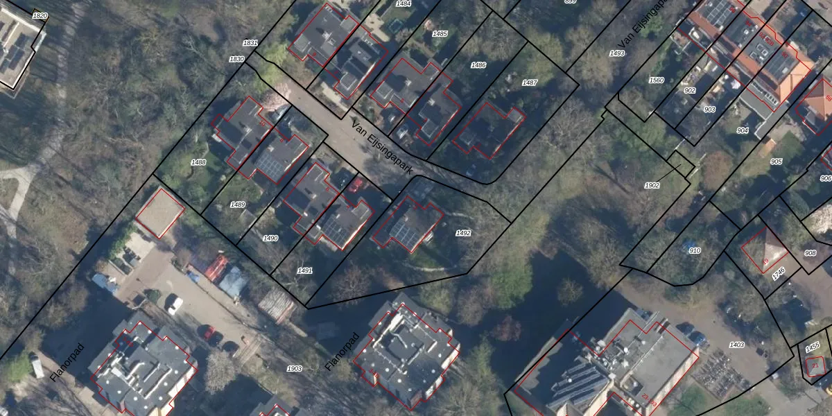 Het perceel waarop Van Eijsingapark 2 staat heeft een oppervlakte van 750 m². Dit is een groot perceel. De perceeloppervlakte wordt geregistreerd door het Kadaster. Gedetailleerde informatie over de maten van dit perceel kunt u vinden in het rapport Kadastrale kaart met maatvoering van Van Eijsingapark 2.