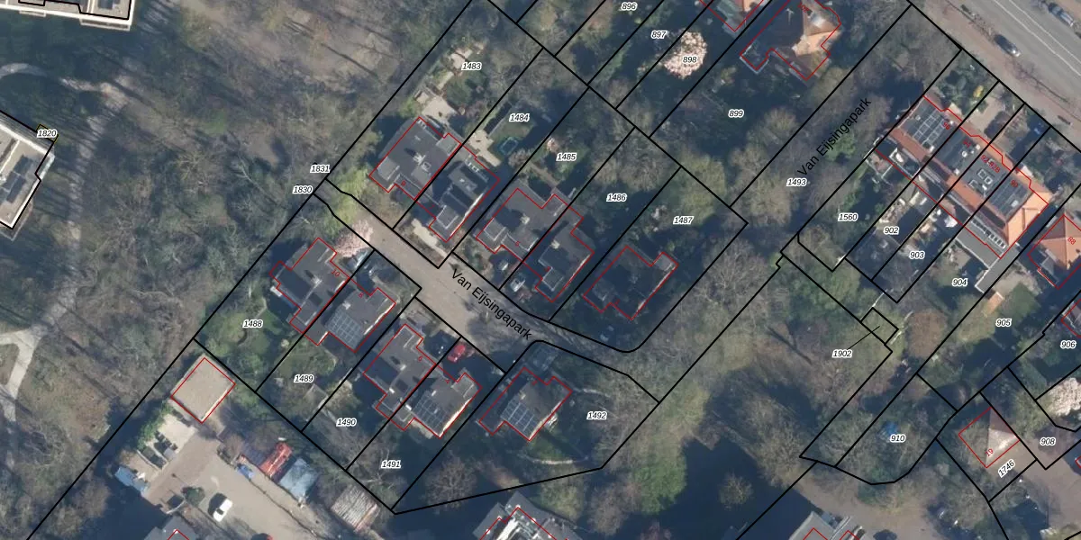 Het perceel waarop Van Eijsingapark 3 staat heeft een oppervlakte van 440 m². Dit is een groot perceel. De perceeloppervlakte wordt geregistreerd door het Kadaster. Gedetailleerde informatie over de maten van dit perceel kunt u vinden in het rapport Kadastrale kaart met maatvoering van Van Eijsingapark 3.