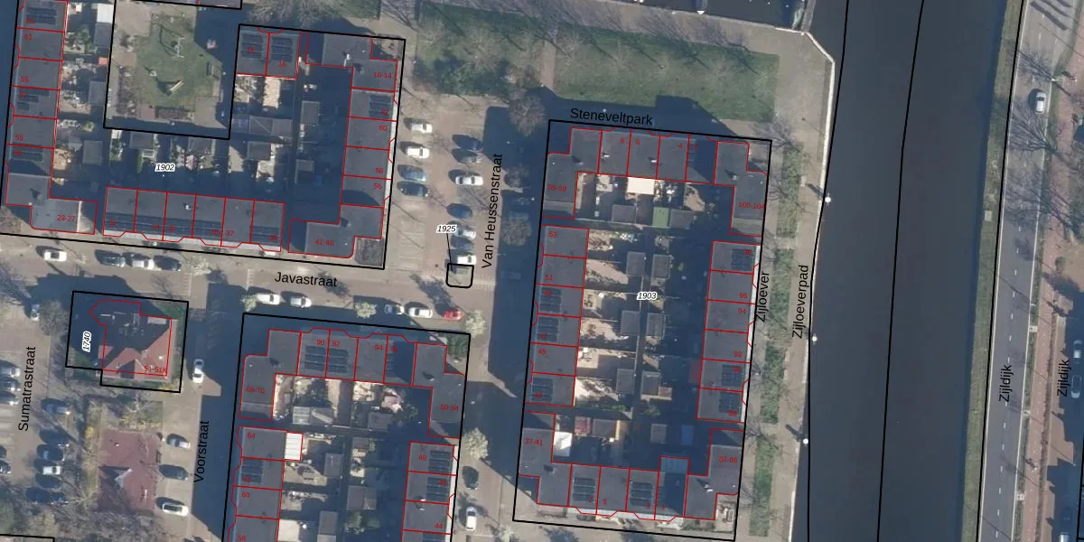 Het perceel waarop Van Heussenstraat 51 staat heeft een oppervlakte van 3043 m². Dit is een zeer groot perceel. De perceeloppervlakte wordt geregistreerd door het Kadaster. Gedetailleerde informatie over de maten van dit perceel kunt u vinden in het rapport Kadastrale kaart met maatvoering van Van Heussenstraat 51.