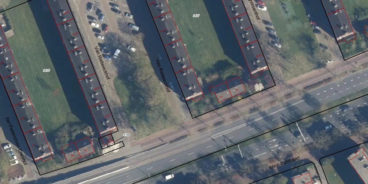 Het perceel waarop Van Riebeeckhof 2 staat heeft een oppervlakte van 4064 m². Dit is een zeer groot perceel. De perceeloppervlakte wordt geregistreerd door het Kadaster. Gedetailleerde informatie over de maten van dit perceel kunt u vinden in het rapport Kadastrale kaart met maatvoering van Van Riebeeckhof 2.