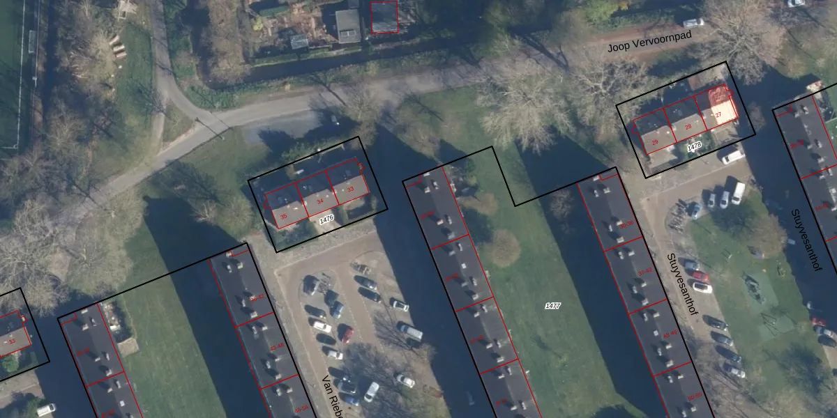 Het perceel waarop Van Riebeeckhof 29 staat heeft een oppervlakte van 4064 m². Dit is een zeer groot perceel. De perceeloppervlakte wordt geregistreerd door het Kadaster. Gedetailleerde informatie over de maten van dit perceel kunt u vinden in het rapport Kadastrale kaart met maatvoering van Van Riebeeckhof 29.