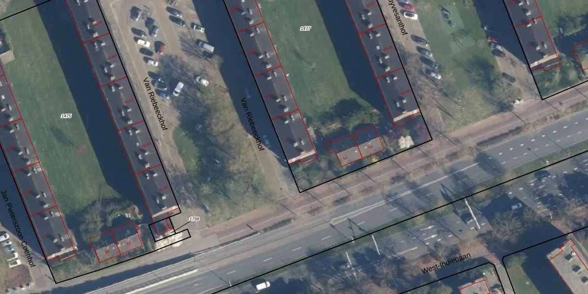 Het perceel waarop Van Riebeeckhof 3 staat heeft een oppervlakte van 4064 m². Dit is een zeer groot perceel. De perceeloppervlakte wordt geregistreerd door het Kadaster. Gedetailleerde informatie over de maten van dit perceel kunt u vinden in het rapport Kadastrale kaart met maatvoering van Van Riebeeckhof 3.