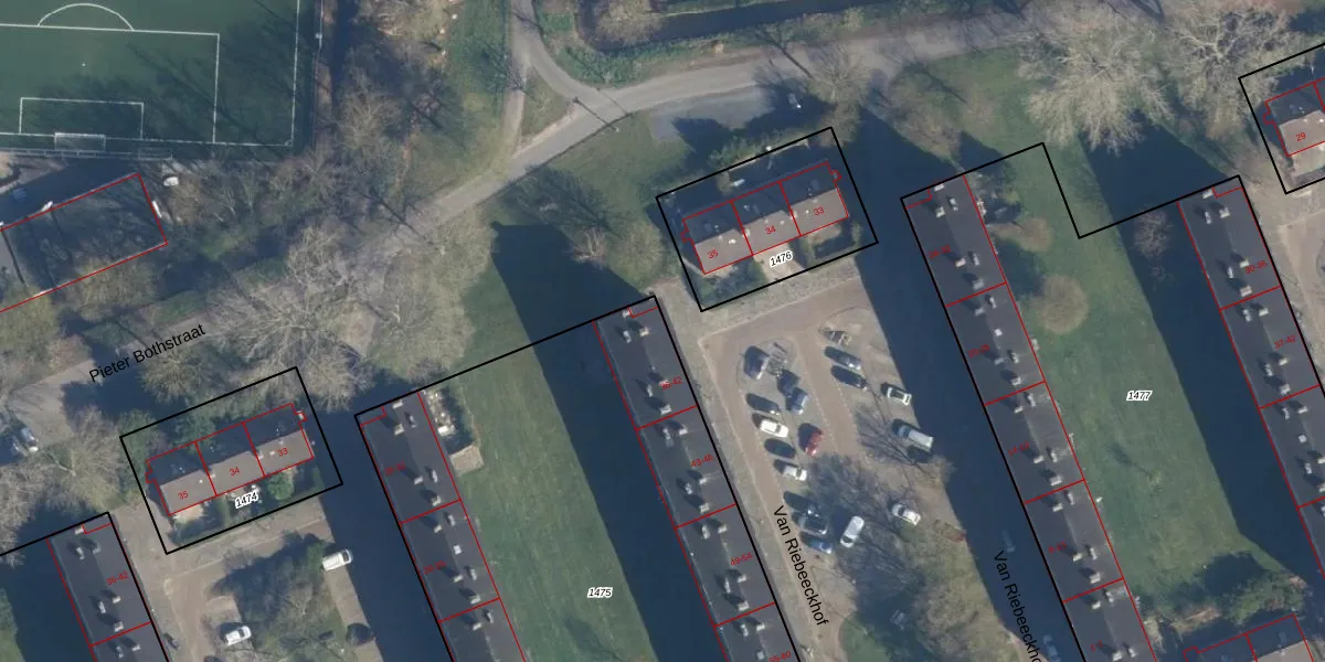 Van Riebeeckhof 36 is gelegen op kadastraal perceel LDN01N1475. Deze kadastrale aanduiding is uniek en wordt gebruikt door het Kadaster om eigendomsrechten en andere zakelijke rechten vast te leggen. Het perceel maakt onderdeel uit van de kadastrale gemeente Leiden.
