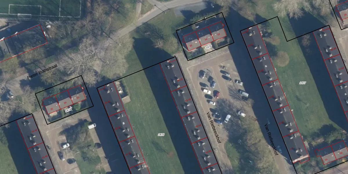 Het perceel waarop Van Riebeeckhof 42 staat heeft een oppervlakte van 4367 m². Dit is een zeer groot perceel. De perceeloppervlakte wordt geregistreerd door het Kadaster. Gedetailleerde informatie over de maten van dit perceel kunt u vinden in het rapport Kadastrale kaart met maatvoering van Van Riebeeckhof 42.