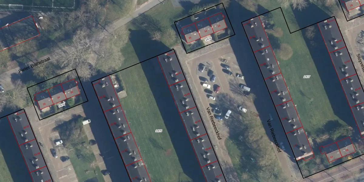 Het perceel waarop Van Riebeeckhof 44 staat heeft een oppervlakte van 4367 m². Dit is een zeer groot perceel. De perceeloppervlakte wordt geregistreerd door het Kadaster. Gedetailleerde informatie over de maten van dit perceel kunt u vinden in het rapport Kadastrale kaart met maatvoering van Van Riebeeckhof 44.