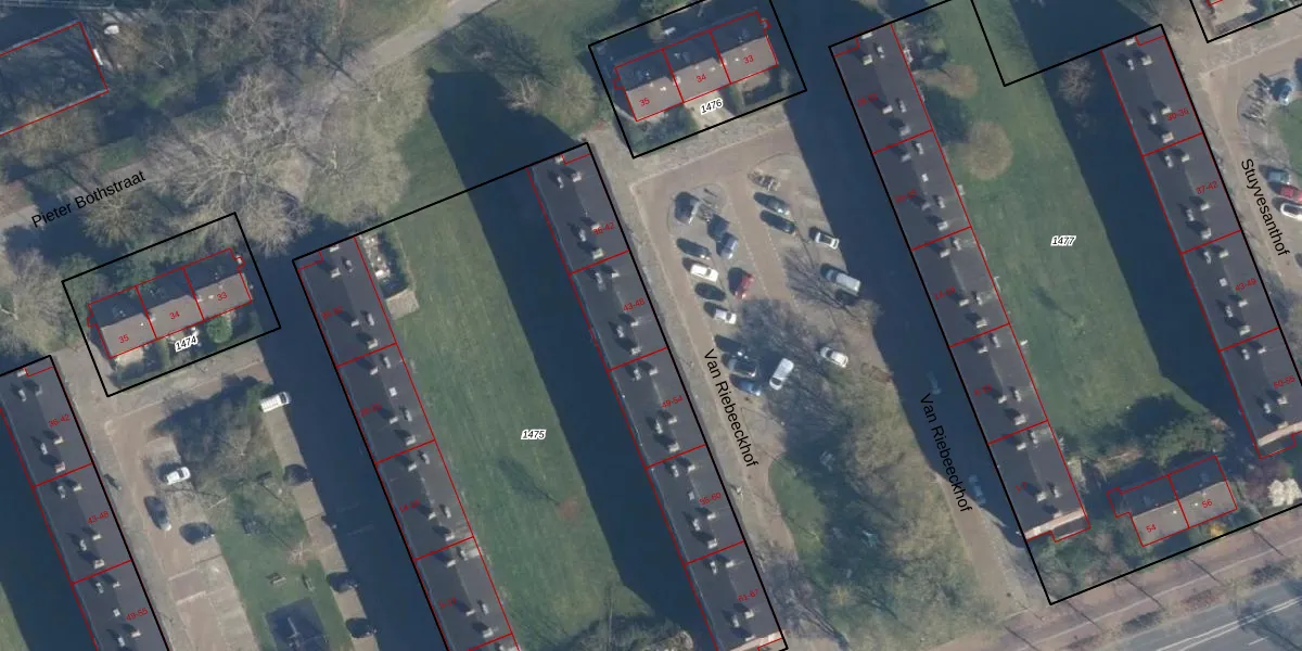 Van Riebeeckhof 46 is gelegen op kadastraal perceel LDN01N1475. Deze kadastrale aanduiding is uniek en wordt gebruikt door het Kadaster om eigendomsrechten en andere zakelijke rechten vast te leggen. Het perceel maakt onderdeel uit van de kadastrale gemeente Leiden.