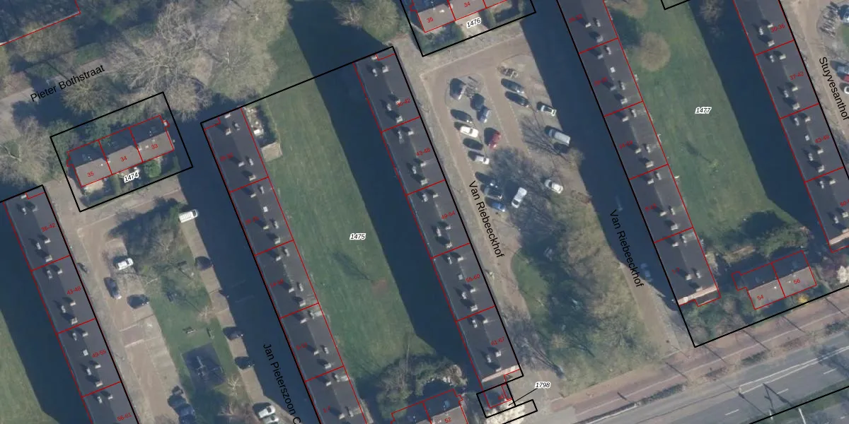 Het perceel waarop Van Riebeeckhof 51 staat heeft een oppervlakte van 4367 m². Dit is een zeer groot perceel. De perceeloppervlakte wordt geregistreerd door het Kadaster. Gedetailleerde informatie over de maten van dit perceel kunt u vinden in het rapport Kadastrale kaart met maatvoering van Van Riebeeckhof 51.
