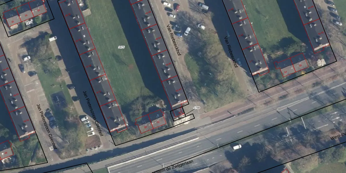 Het perceel waarop Van Riebeeckhof 62 staat heeft een oppervlakte van 4367 m². Dit is een zeer groot perceel. De perceeloppervlakte wordt geregistreerd door het Kadaster. Gedetailleerde informatie over de maten van dit perceel kunt u vinden in het rapport Kadastrale kaart met maatvoering van Van Riebeeckhof 62.