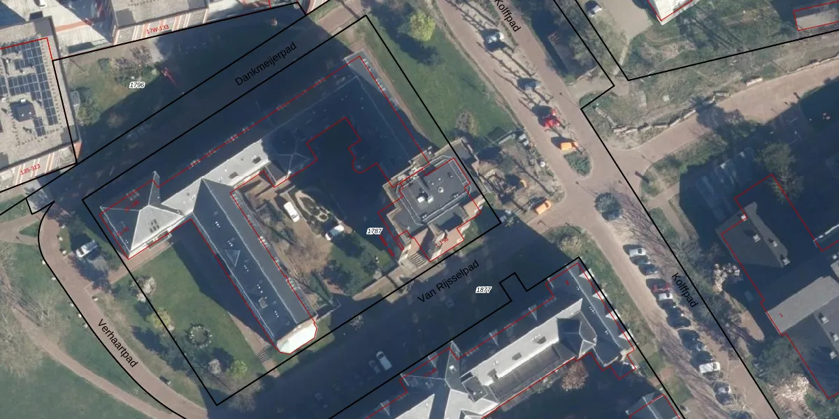 Het perceel waarop Van Rijsselpad 103 staat heeft een oppervlakte van 4740 m². Dit is een zeer groot perceel. De perceeloppervlakte wordt geregistreerd door het Kadaster. Gedetailleerde informatie over de maten van dit perceel kunt u vinden in het rapport Kadastrale kaart met maatvoering van Van Rijsselpad 103.