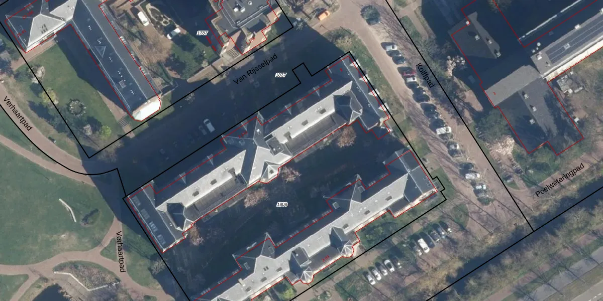 Van Rijsselpad 106 is gelegen op kadastraal perceel LDN01R1808. Deze kadastrale aanduiding is uniek en wordt gebruikt door het Kadaster om eigendomsrechten en andere zakelijke rechten vast te leggen. Het perceel maakt onderdeel uit van de kadastrale gemeente Leiden.