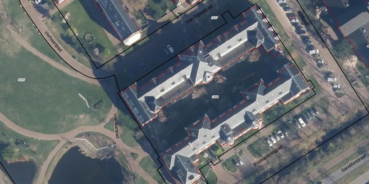 Het perceel waarop Van Rijsselpad 122 staat heeft een oppervlakte van 5540 m². Dit is een zeer groot perceel. De perceeloppervlakte wordt geregistreerd door het Kadaster. Gedetailleerde informatie over de maten van dit perceel kunt u vinden in het rapport Kadastrale kaart met maatvoering van Van Rijsselpad 122.