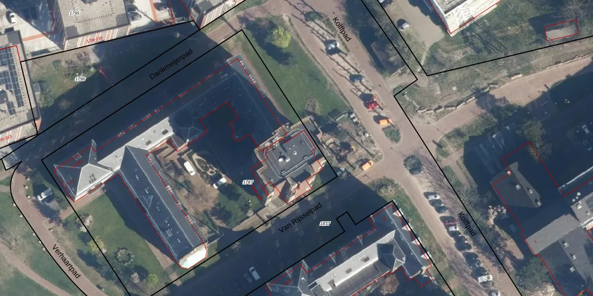 Het adres ligt op het perceel LDN01-R-1787, dat zich in de kadastrale gemeente Leiden bevindt. De oppervlakte van het perceel is 4740 m². Dat is groter dan gemiddeld in Leiden, waar de gemiddelde perceeloppervlakte op 703,94 m² ligt. Het grootste perceel in de kadastrale gemeente is 51,8 ha. Het kleinste perceel heeft een oppervlakte van 0 m². Op het perceel zijn 178 adressen aanwezig. De laatste wijziging in het de Basisregistratie Kadaster (BRK) was op 29-04-2019.