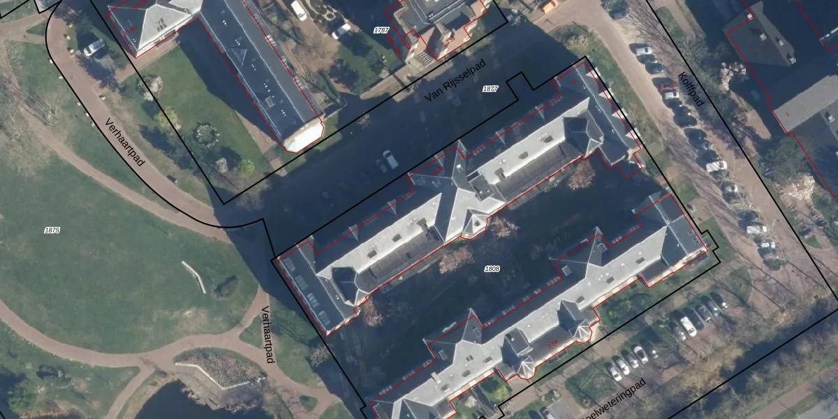 Het perceel waarop Van Rijsselpad 28 staat heeft een oppervlakte van 5540 m². Dit is een zeer groot perceel. De perceeloppervlakte wordt geregistreerd door het Kadaster. Gedetailleerde informatie over de maten van dit perceel kunt u vinden in het rapport Kadastrale kaart met maatvoering van Van Rijsselpad 28.