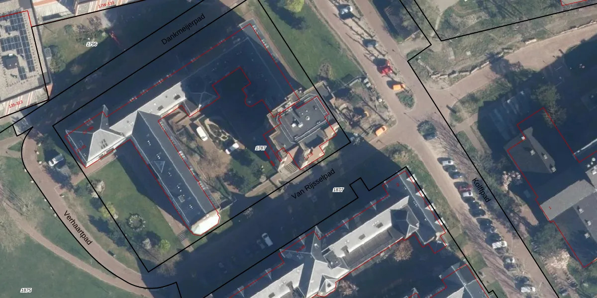 Het perceel waarop Van Rijsselpad 33 staat heeft een oppervlakte van 4740 m². Dit is een zeer groot perceel. De perceeloppervlakte wordt geregistreerd door het Kadaster. Gedetailleerde informatie over de maten van dit perceel kunt u vinden in het rapport Kadastrale kaart met maatvoering van Van Rijsselpad 33.