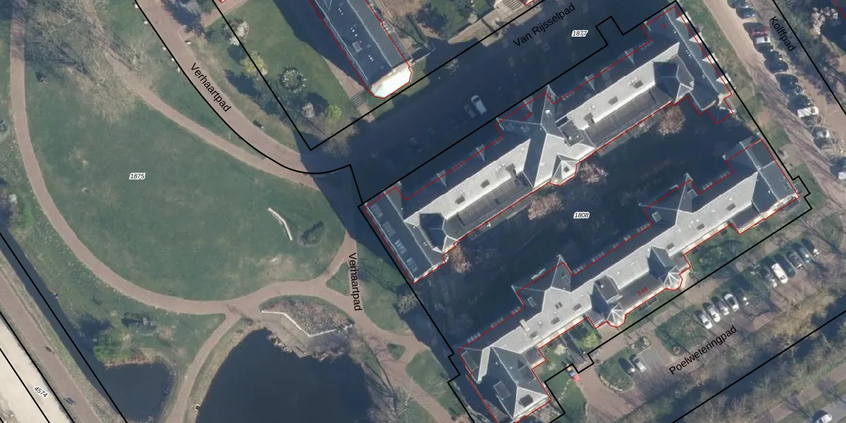 Het perceel waarop Van Rijsselpad 38 staat heeft een oppervlakte van 5540 m². Dit is een zeer groot perceel. De perceeloppervlakte wordt geregistreerd door het Kadaster. Gedetailleerde informatie over de maten van dit perceel kunt u vinden in het rapport Kadastrale kaart met maatvoering van Van Rijsselpad 38.