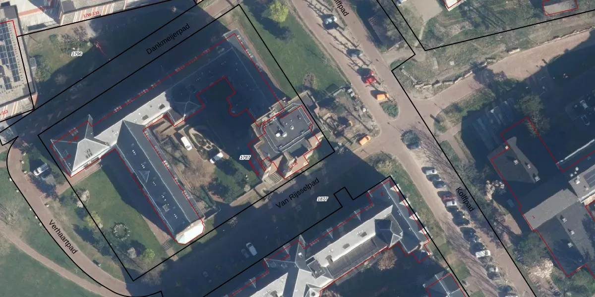 Het perceel waarop Van Rijsselpad 39 staat heeft een oppervlakte van 4740 m². Dit is een zeer groot perceel. De perceeloppervlakte wordt geregistreerd door het Kadaster. Gedetailleerde informatie over de maten van dit perceel kunt u vinden in het rapport Kadastrale kaart met maatvoering van Van Rijsselpad 39.