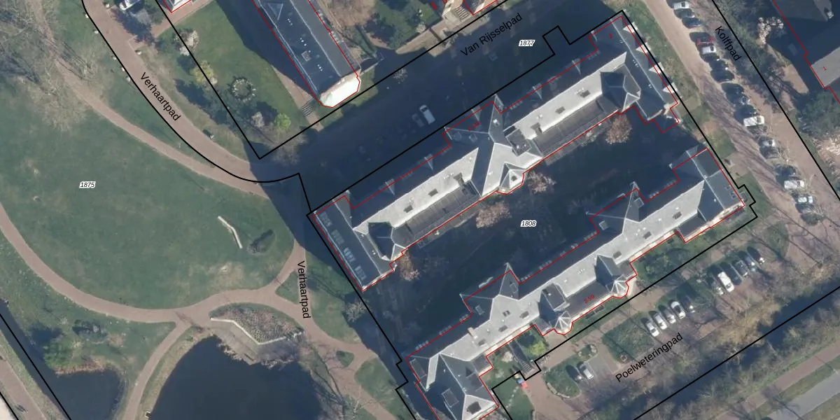 Het perceel waarop Van Rijsselpad 74 staat heeft een oppervlakte van 5540 m². Dit is een zeer groot perceel. De perceeloppervlakte wordt geregistreerd door het Kadaster. Gedetailleerde informatie over de maten van dit perceel kunt u vinden in het rapport Kadastrale kaart met maatvoering van Van Rijsselpad 74.