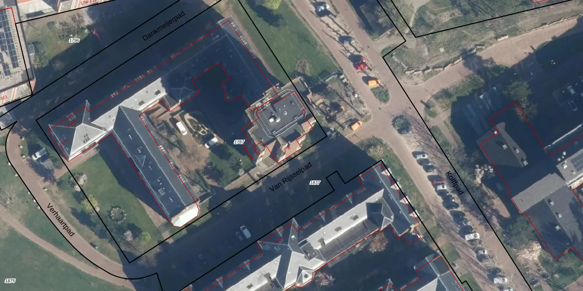 Het perceel waarop Van Rijsselpad 9 staat heeft een oppervlakte van 4740 m². Dit is een zeer groot perceel. De perceeloppervlakte wordt geregistreerd door het Kadaster. Gedetailleerde informatie over de maten van dit perceel kunt u vinden in het rapport Kadastrale kaart met maatvoering van Van Rijsselpad 9.