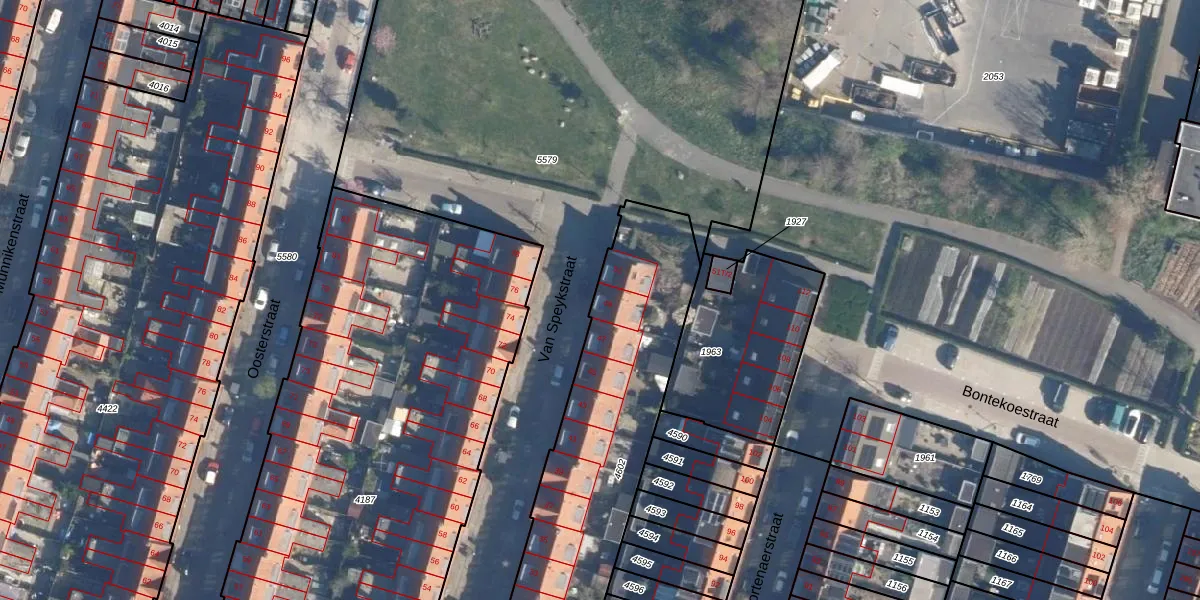 Het perceel waarop Van Speykstraat 49 staat heeft een oppervlakte van 1596 m². Dit is een zeer groot perceel. De perceeloppervlakte wordt geregistreerd door het Kadaster. Gedetailleerde informatie over de maten van dit perceel kunt u vinden in het rapport Kadastrale kaart met maatvoering van Van Speykstraat 49.