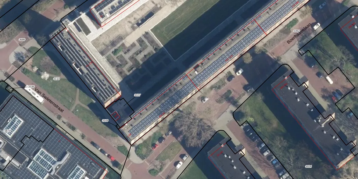 Het perceel waarop Van Swietenstraat 39 staat heeft een oppervlakte van 1,3 ha. Dit is een zeer groot perceel. De perceeloppervlakte wordt geregistreerd door het Kadaster. Gedetailleerde informatie over de maten van dit perceel kunt u vinden in het rapport Kadastrale kaart met maatvoering van Van Swietenstraat 39.