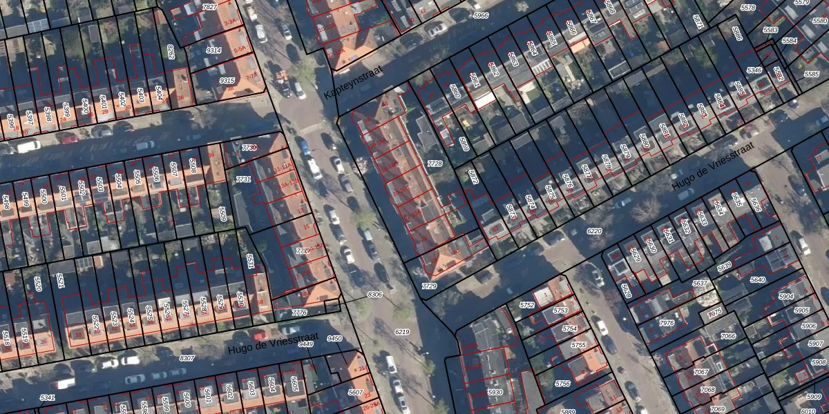 Het adres is gelegen op perceel 7728 in de sectie M en de kadastrale gemeente Leiden. De kadastrale aanduiding is aldus LDN01-M-7728. De oppervlakte van het perceel is 799 m². Dat is groter dan gemiddeld in Leiden, waar de gemiddelde perceeloppervlakte op 704,18 m² ligt. Het kleinste perceel in de kadastrale gemeente is 0 m² groot. De grootste perceeloppervlakte is 51,8 ha. Op het perceel zijn 12 adressen aanwezig. De huidige grenzen van het perceel zijn digitaal in de Basisregistratie Kadaster (BRK) geregistreerd op 28-08-2003.