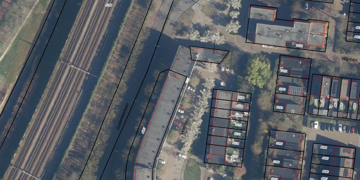 Veenbes 1 is gelegen op kadastraal perceel LDN01S4687. Deze kadastrale aanduiding is uniek en wordt gebruikt door het Kadaster om eigendomsrechten en andere zakelijke rechten vast te leggen. Het perceel maakt onderdeel uit van de kadastrale gemeente Leiden.
