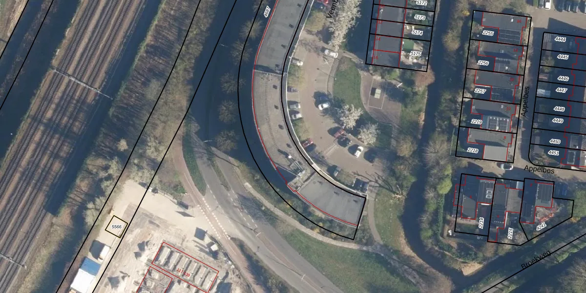 Het perceel waarop Veenbes 55 staat heeft een oppervlakte van 1811 m². Dit is een zeer groot perceel. De perceeloppervlakte wordt geregistreerd door het Kadaster. Gedetailleerde informatie over de maten van dit perceel kunt u vinden in het rapport Kadastrale kaart met maatvoering van Veenbes 55.
