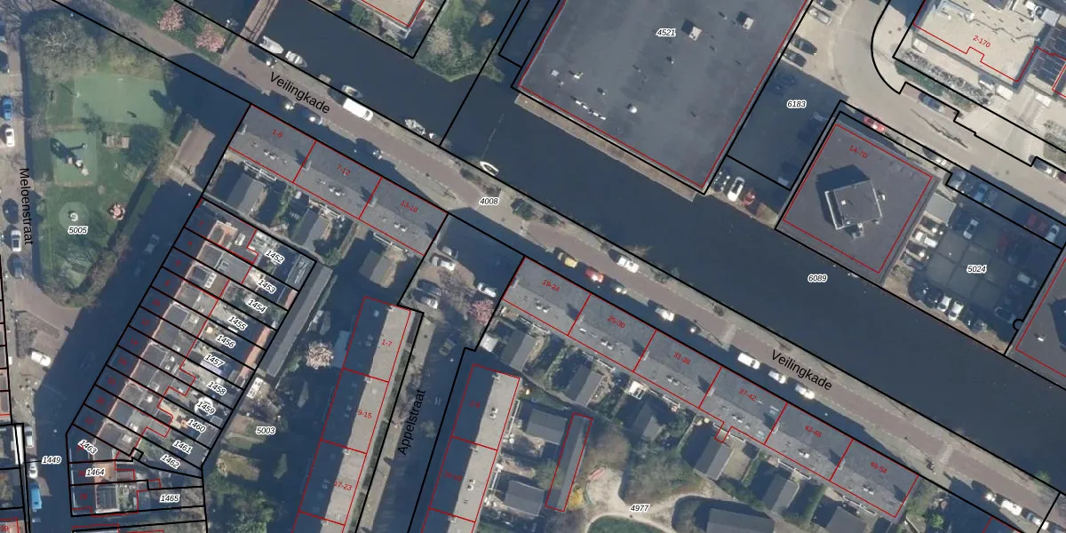 Veilingkade 19 is gelegen op kadastraal perceel LDN01O4977. Deze kadastrale aanduiding is uniek en wordt gebruikt door het Kadaster om eigendomsrechten en andere zakelijke rechten vast te leggen. Het perceel maakt onderdeel uit van de kadastrale gemeente Leiden.