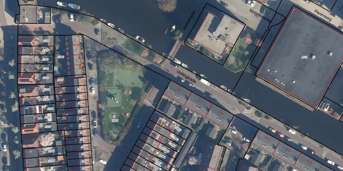Veilingkade 2 is gelegen op kadastraal perceel LDN01O5003. Deze kadastrale aanduiding is uniek en wordt gebruikt door het Kadaster om eigendomsrechten en andere zakelijke rechten vast te leggen. Het perceel maakt onderdeel uit van de kadastrale gemeente Leiden.