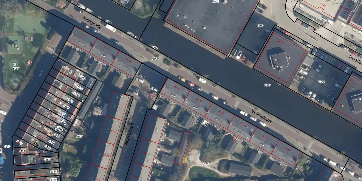 Veilingkade 23 is gelegen op kadastraal perceel LDN01O4977. Deze kadastrale aanduiding is uniek en wordt gebruikt door het Kadaster om eigendomsrechten en andere zakelijke rechten vast te leggen. Het perceel maakt onderdeel uit van de kadastrale gemeente Leiden.